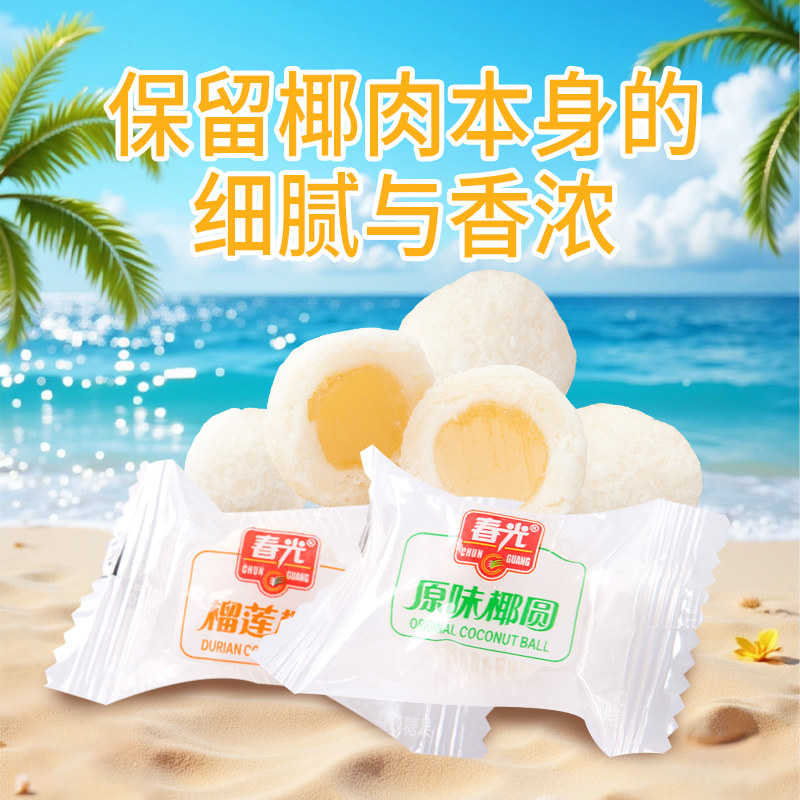 春光食品海南特产糖果原味椰圆椰蓉夹心袋装软糖零食小吃榴莲椰子
