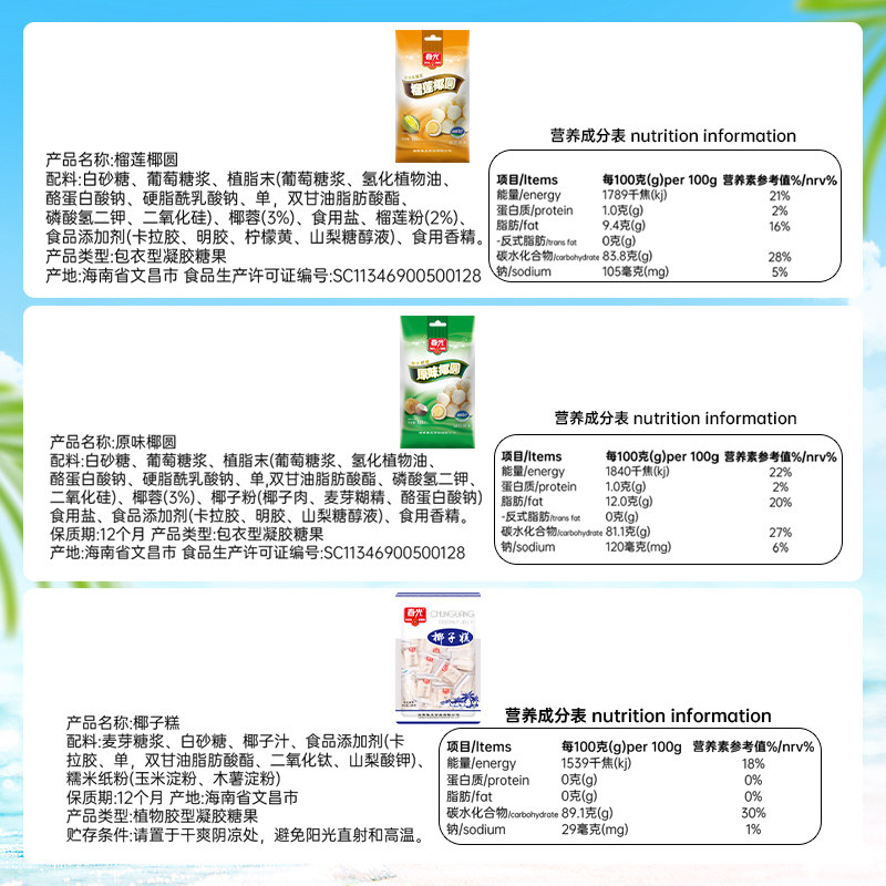 推荐理由:春光食品海南特产糖果原味椰圆椰蓉夹心袋装软糖零食小吃榴莲椰子