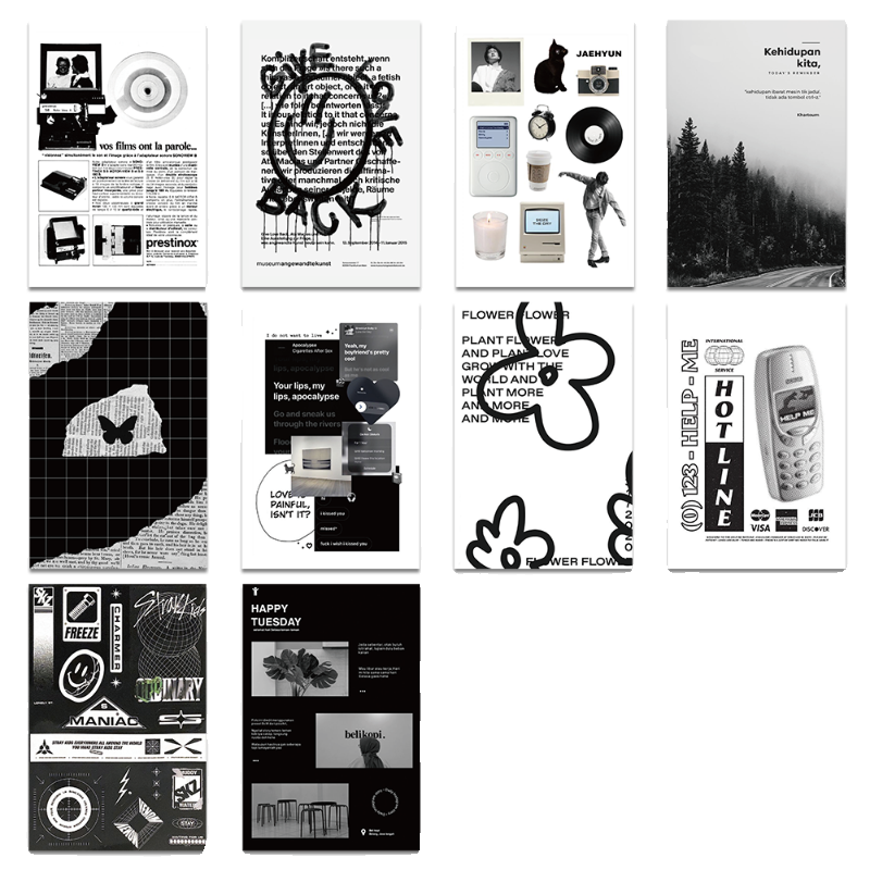 推荐理由:10张小众黑白故事高级感卡片家居墙面拍照道具简约自贴装饰明信片
