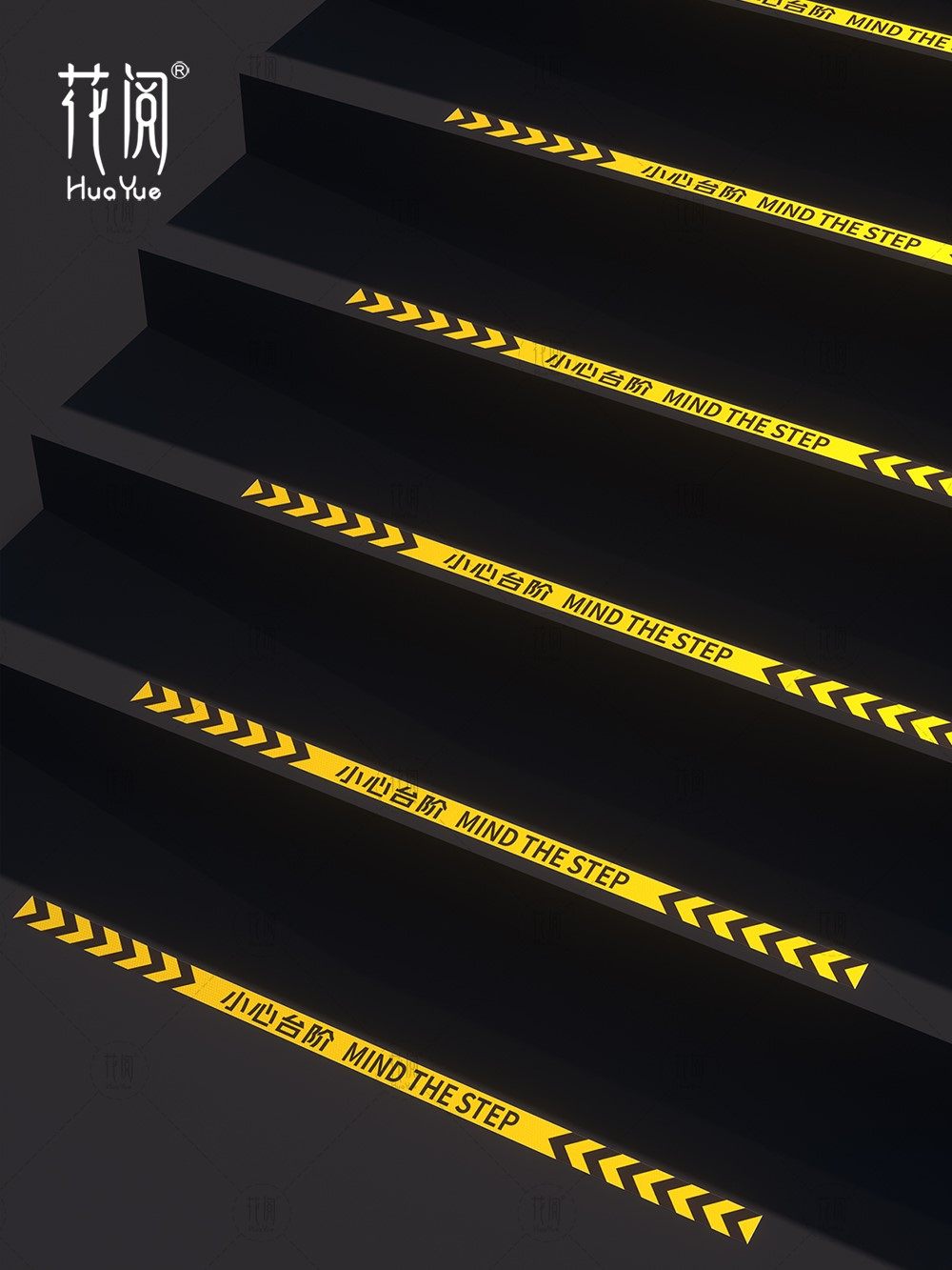 小心台阶地滑耐磨防滑地贴反光地标防水斜纹地贴商场公司楼梯公共场所温馨提示PVC材质警示条贴黄黑反光标识