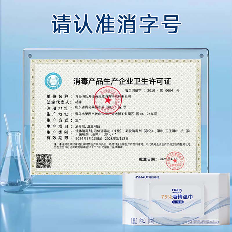 海氏海诺75度酒精消毒湿巾家用皮肤清洁卫生杀菌一次性湿纸巾正品