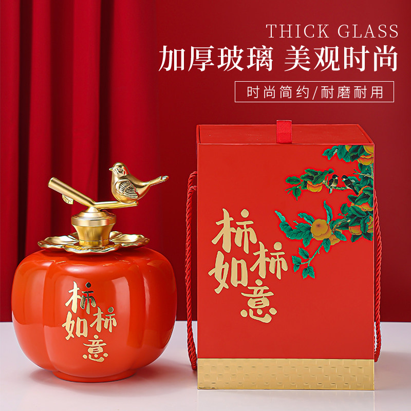 推荐理由:新款五斤柿子酒瓶空瓶高档密封玻璃酒瓶柿柿如意酒瓶空酒瓶泡酒壶