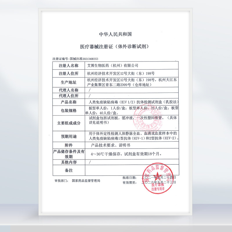 雅培艾滋病检测试纸abbott艾博hiv血液准四代自测病毒抗体原试剂