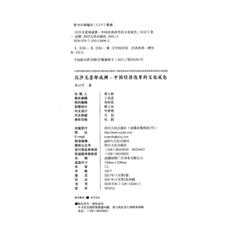 沉沙无意却成洲:中国经济改革的文化底色厉以宁著世界及各国经济概况四川人民出版社新华书店正版