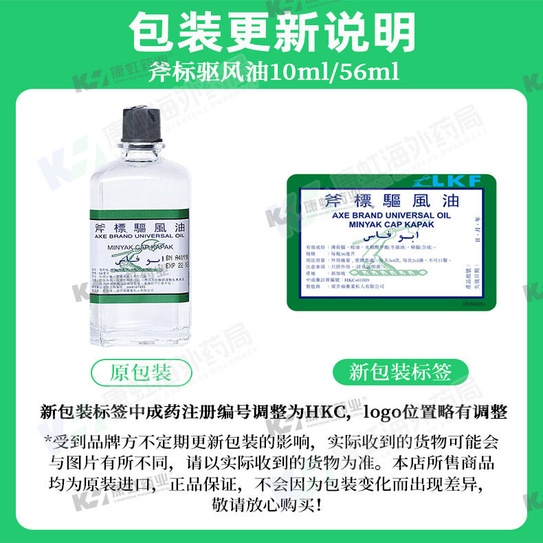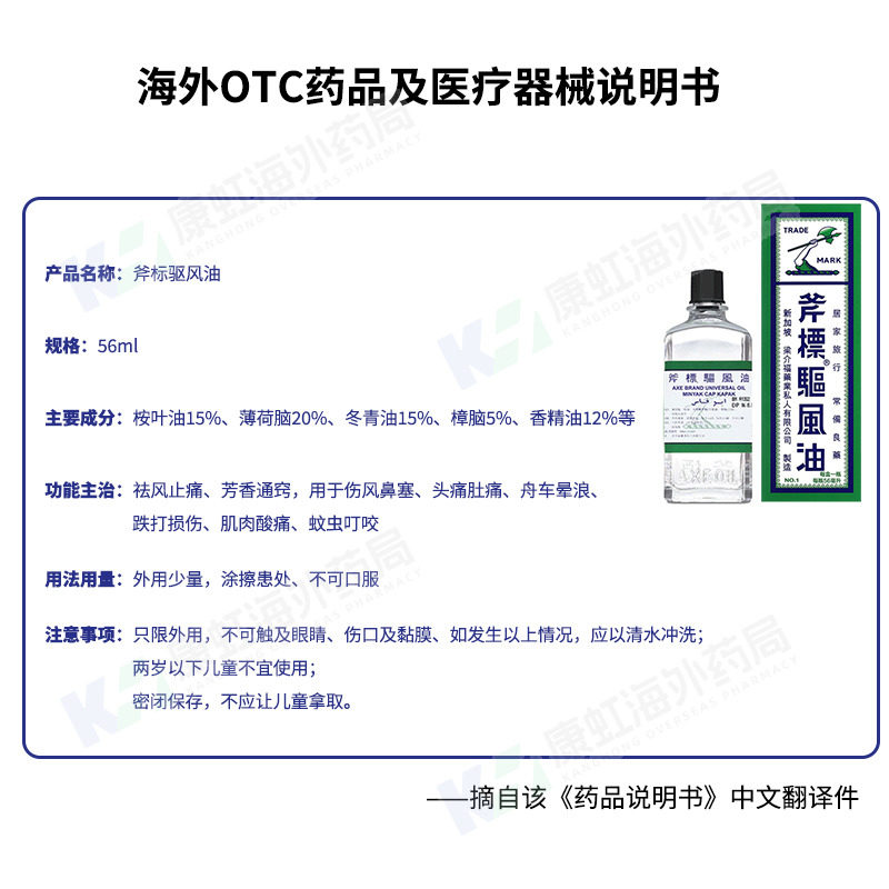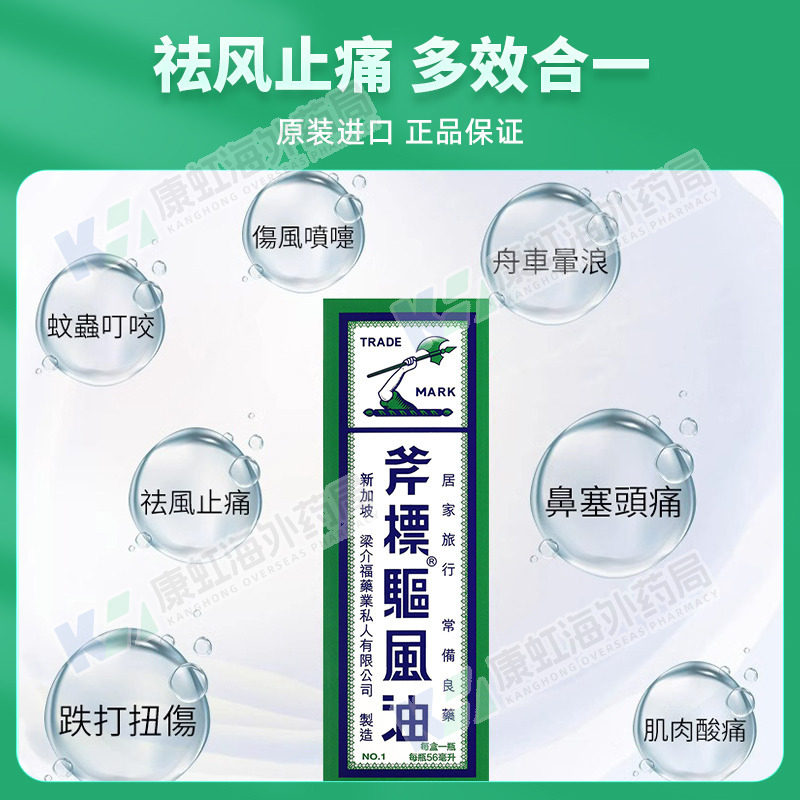 梁介福驱风油斧标港版56ml虎标风油精斧头牌清凉油正品香港进口