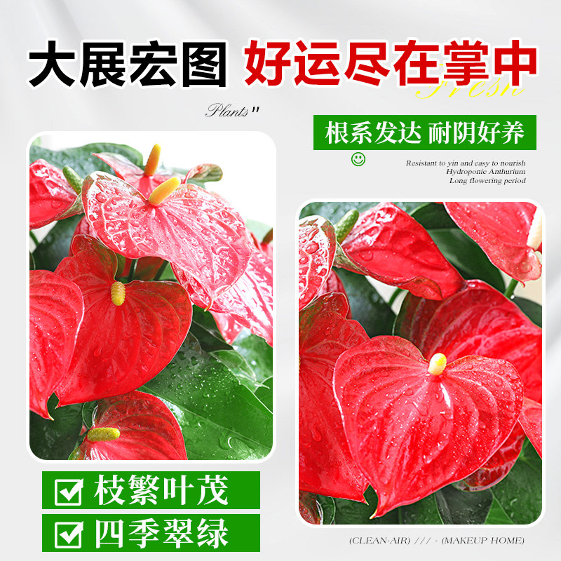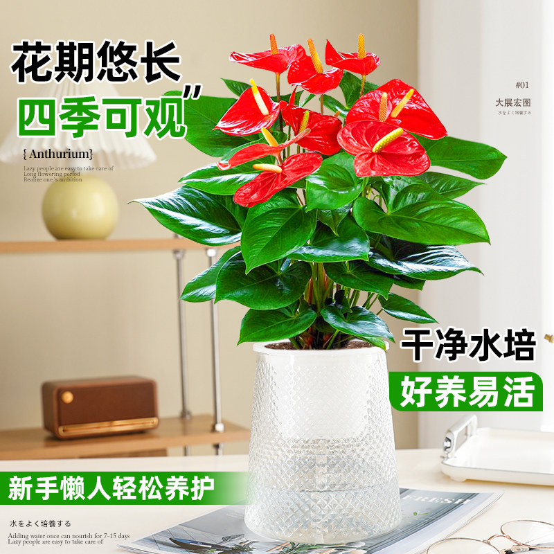 水培红掌白掌盆栽鸿运当头花卉植物室内绿植多季开花净化空气好养