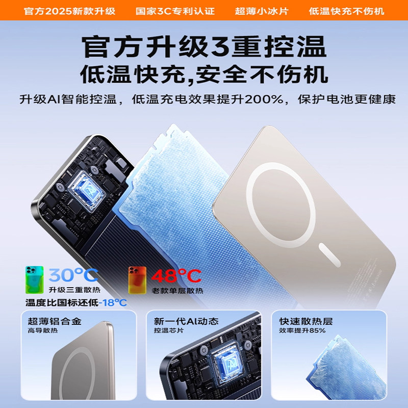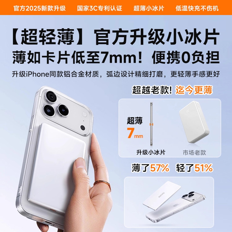 推荐理由:【国家3C认证可上飞机】超薄磁吸充电宝适用苹果iphone17promax官方magsafe无线快充16专用2025新款移动电源