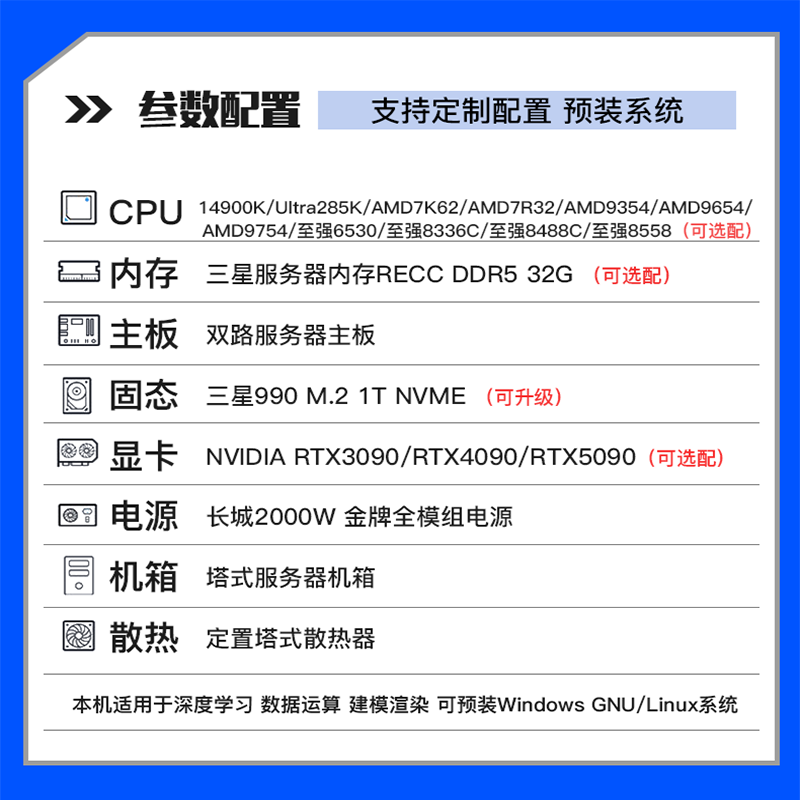 推荐理由:deepseek主机服务器工作站AI人工智能深度学习模型4090 5090GPU本地部署服务器仿真模拟3D建模绘图渲染编程高