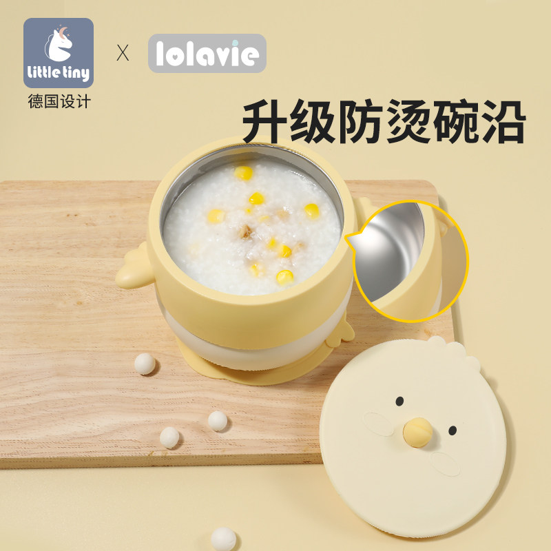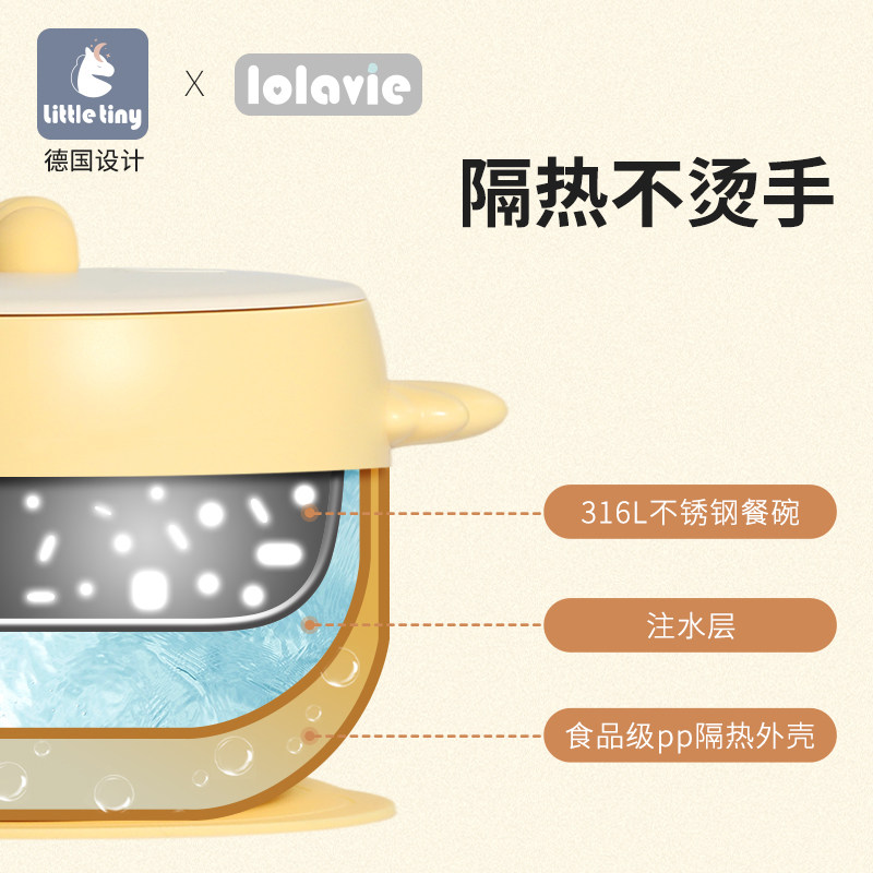 littletiny注水保温碗婴幼儿带盖宝宝辅食碗婴儿专用儿童餐盘恒温