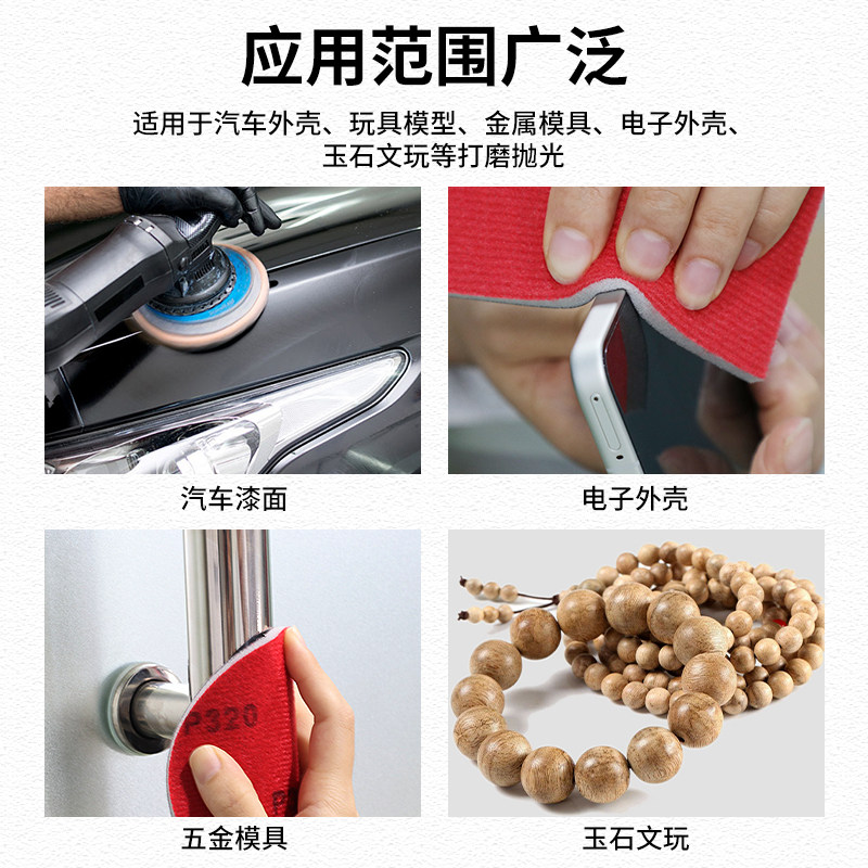 推荐理由:方形海绵砂纸汽车漆面手机外壳模型打磨抛光专用植绒海绵小方砂纸