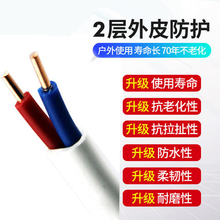 推荐理由:纯铜正品南平电线2芯BVVB硬护套线2*1.5/2.5/4/6.0平方家用照明线