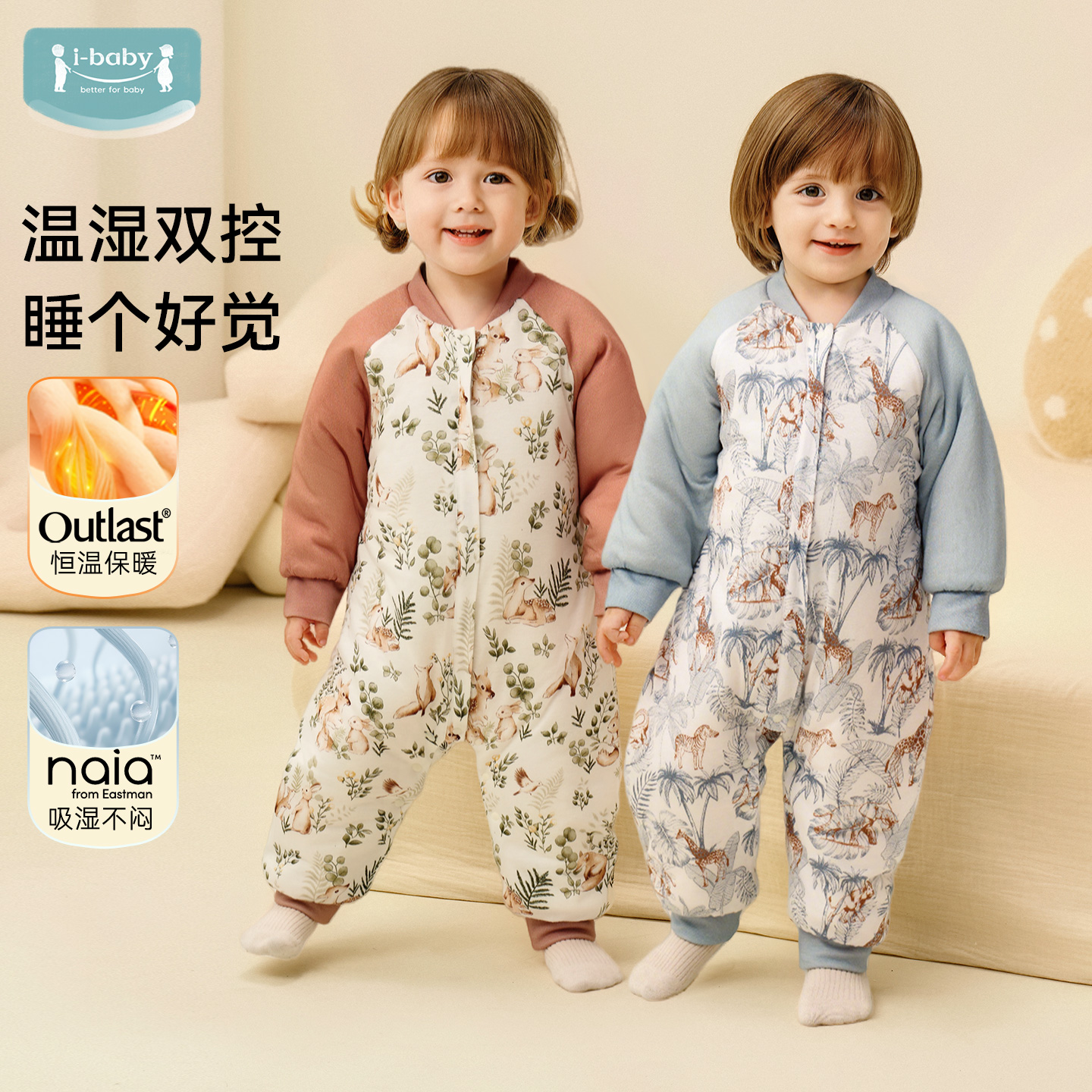 ibaby恒温婴儿睡袋秋冬防踢被儿童夹棉分腿睡衣四季通用