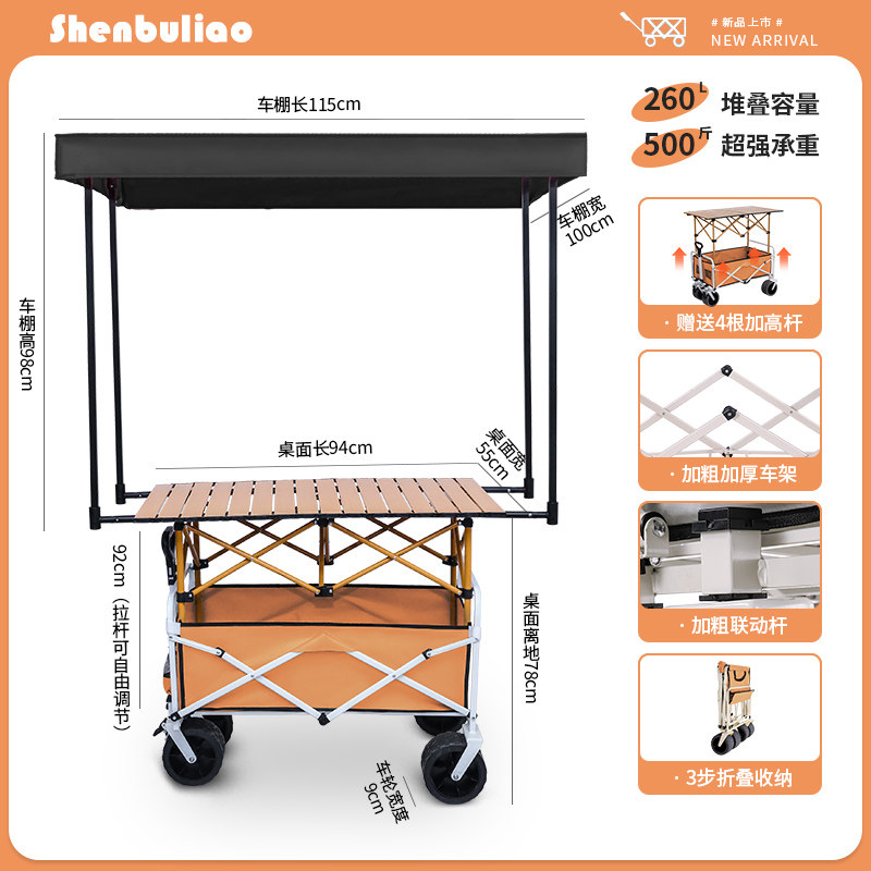 推荐理由:夜市移动摊位展示架烤肠专用摆摊小推车户外露营野餐遮阳伞手推车