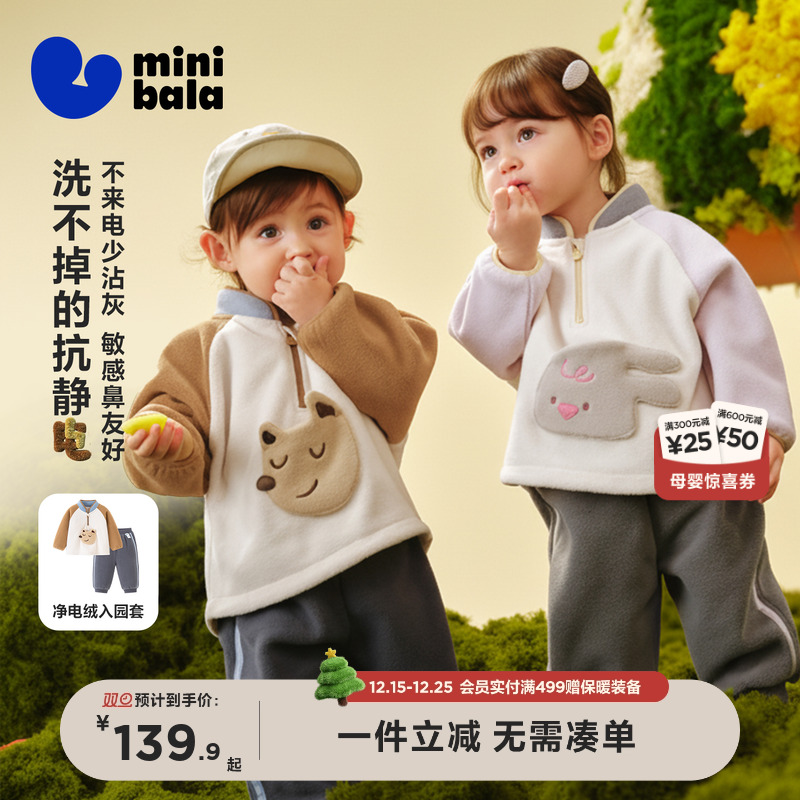 迷你巴拉巴拉男女童抗静电长袖套装摇粒绒柔软保暖两件套2025冬新