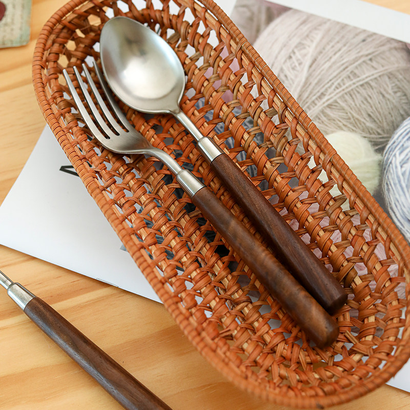 推荐理由:胡桃木实木西餐餐具餐勺汤勺餐叉牛排刀叉304不锈钢日式复古餐厅