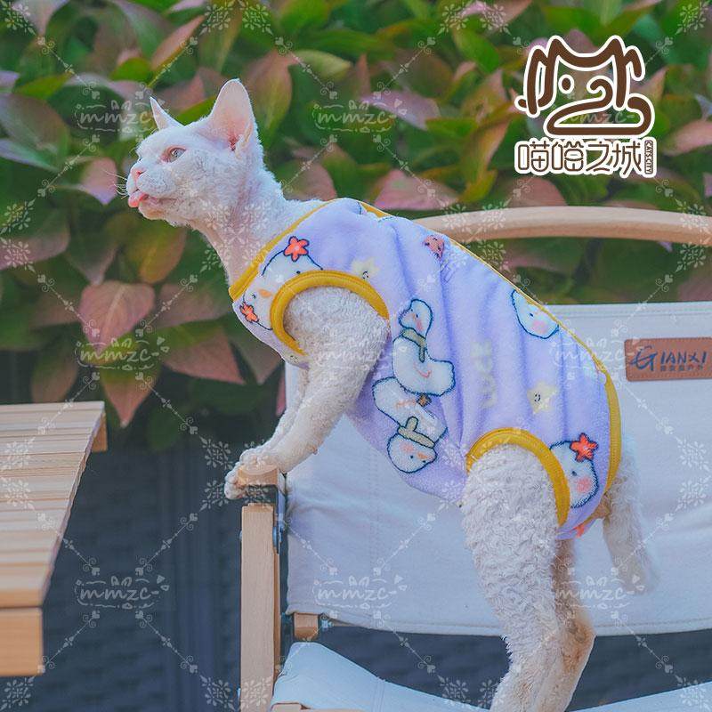 推荐理由:25年新款无毛猫斯芬克斯德文宠物猫保暖加绒法兰绒加厚背心包肚衣