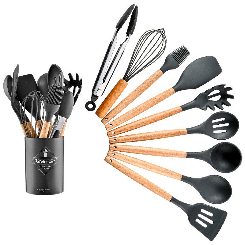 耐高温木质硅胶锅铲12件套硅胶厨具汤勺不粘锅厨房用具硅胶铲套装