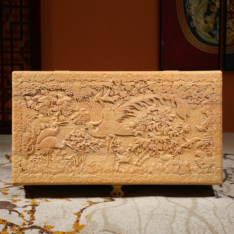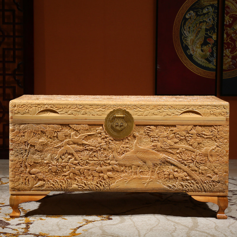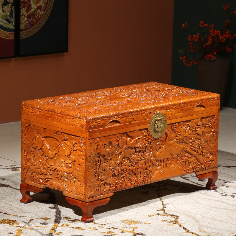 全香樟木箱子实木储物衣箱中式仿古雕花婚嫁箱字画收纳结婚陪嫁箱
