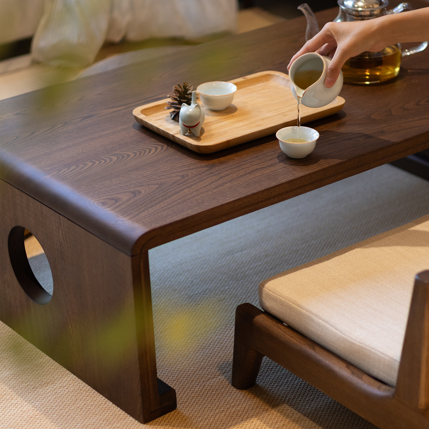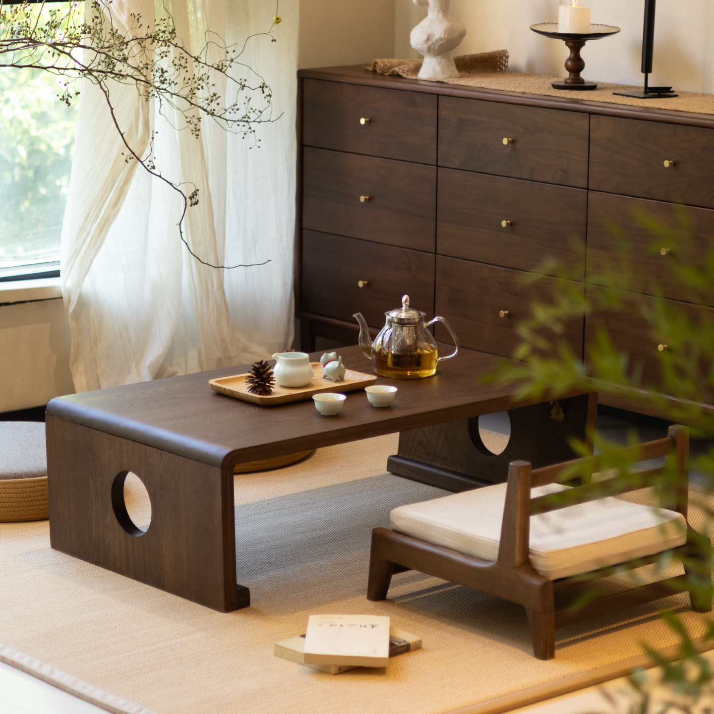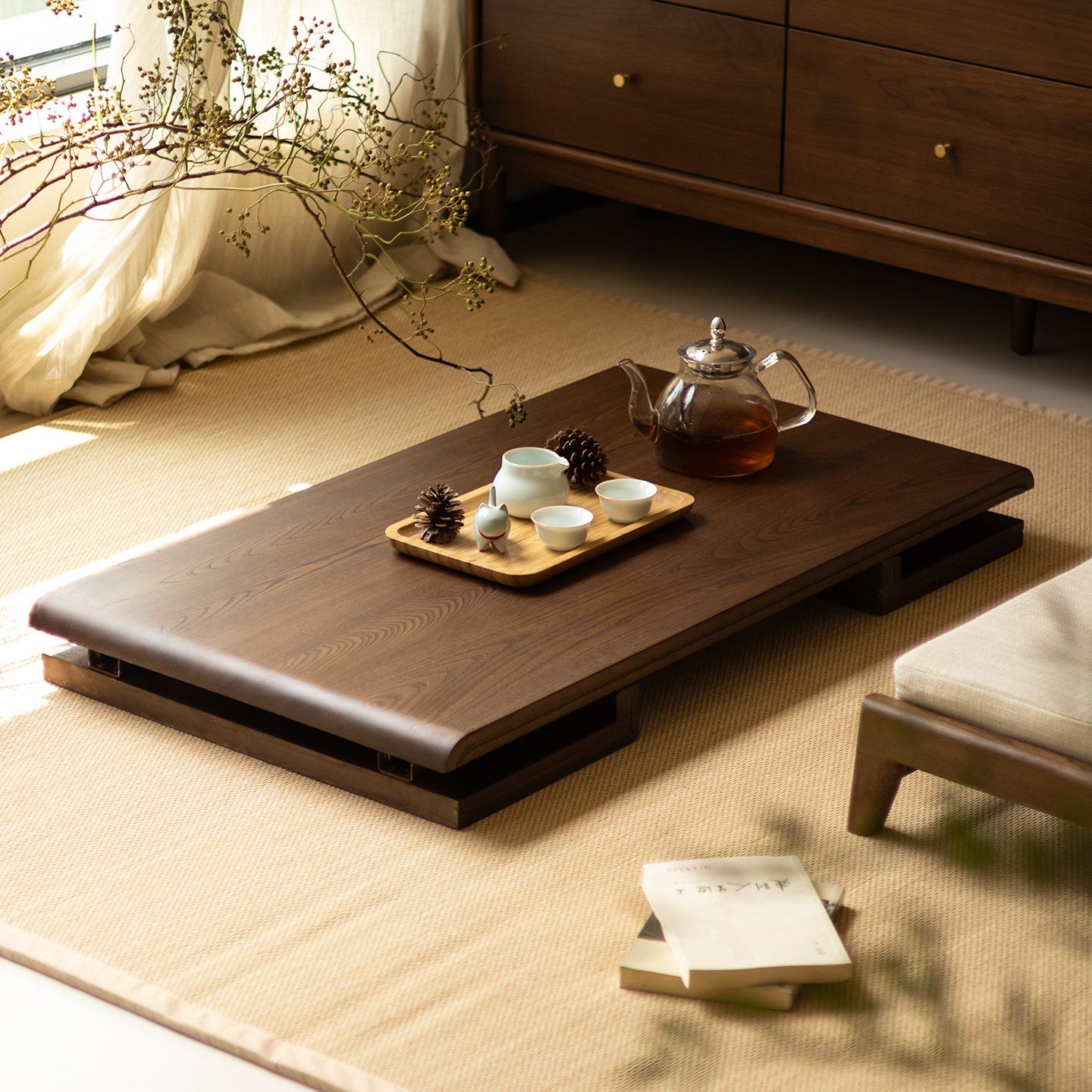 蒲素可折叠实木飘窗小桌榻榻米茶桌茶几窗阳台小矮地桌老榆木炕桌