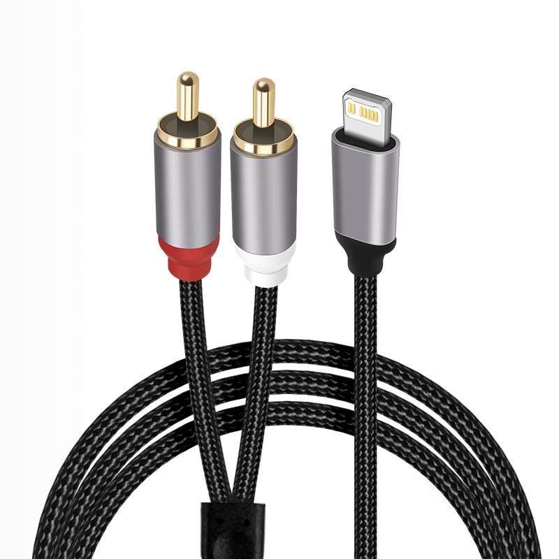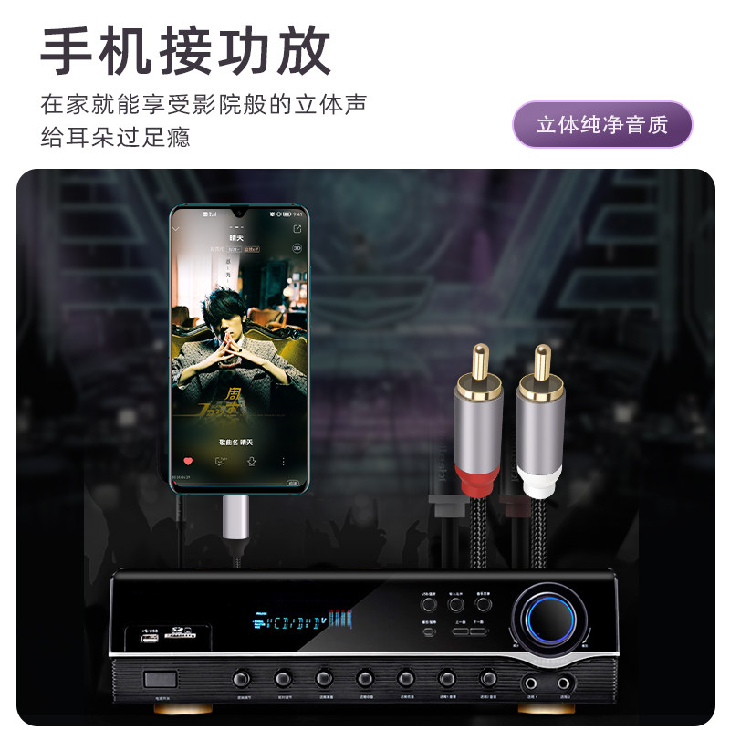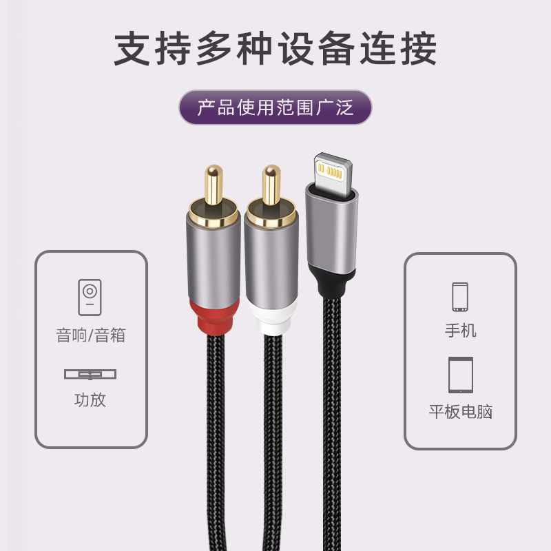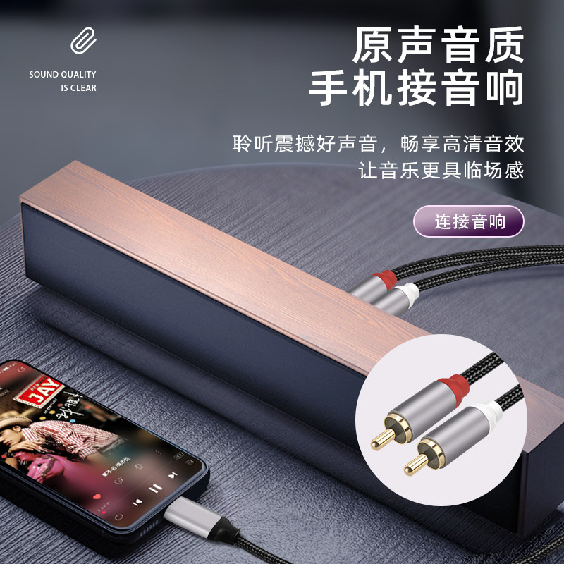 双莲花头音频线一分二2RCA接口12转接11苹果母头iphone13手机音箱