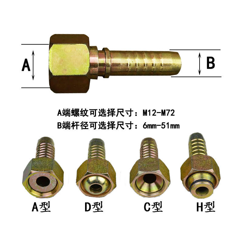 扣压式液压油管接头高压胶管接头公制美标英制钢丝碳钢软管接头