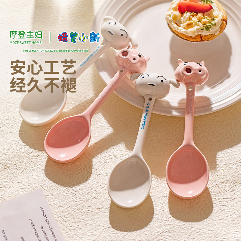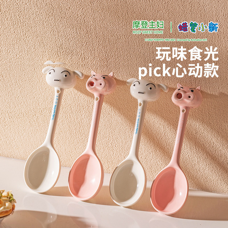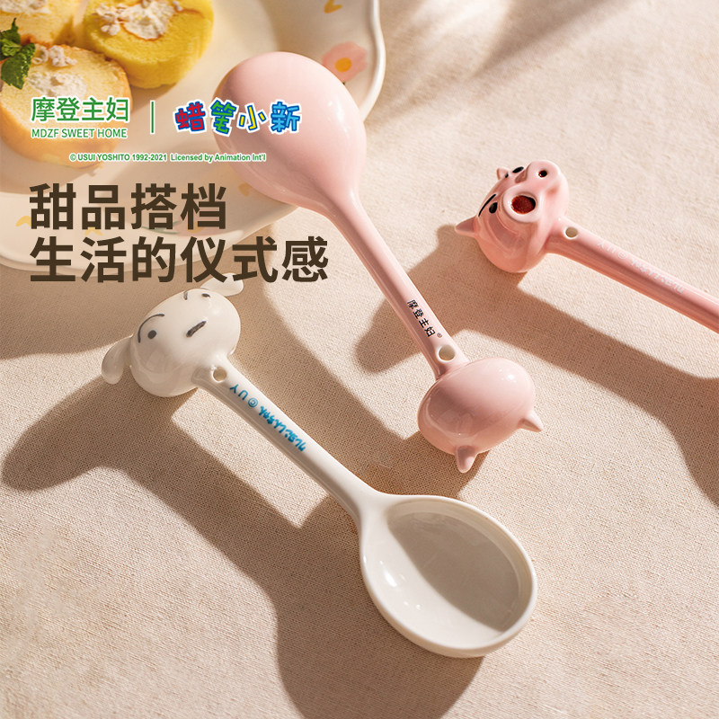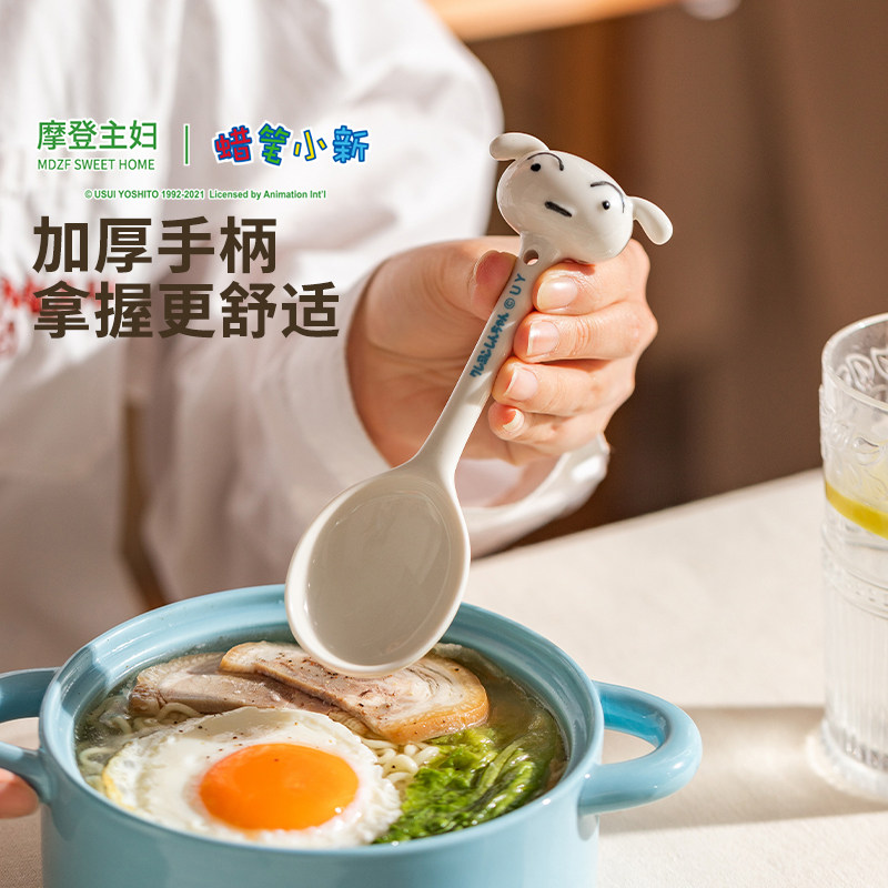 【摩登主妇&蜡笔小新】左卫门陶瓷勺子长柄家用卡通汤勺可爱调羹