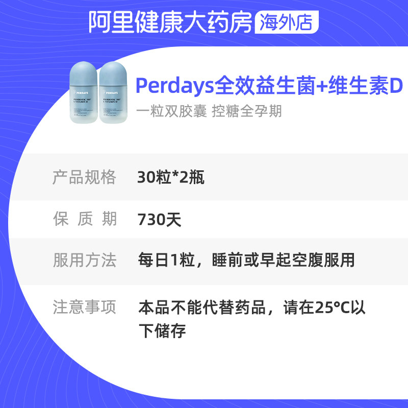 推荐理由:perdays益生菌2瓶女性控糖调理肠胃便秘妊娠血糖健康孕产妇专用