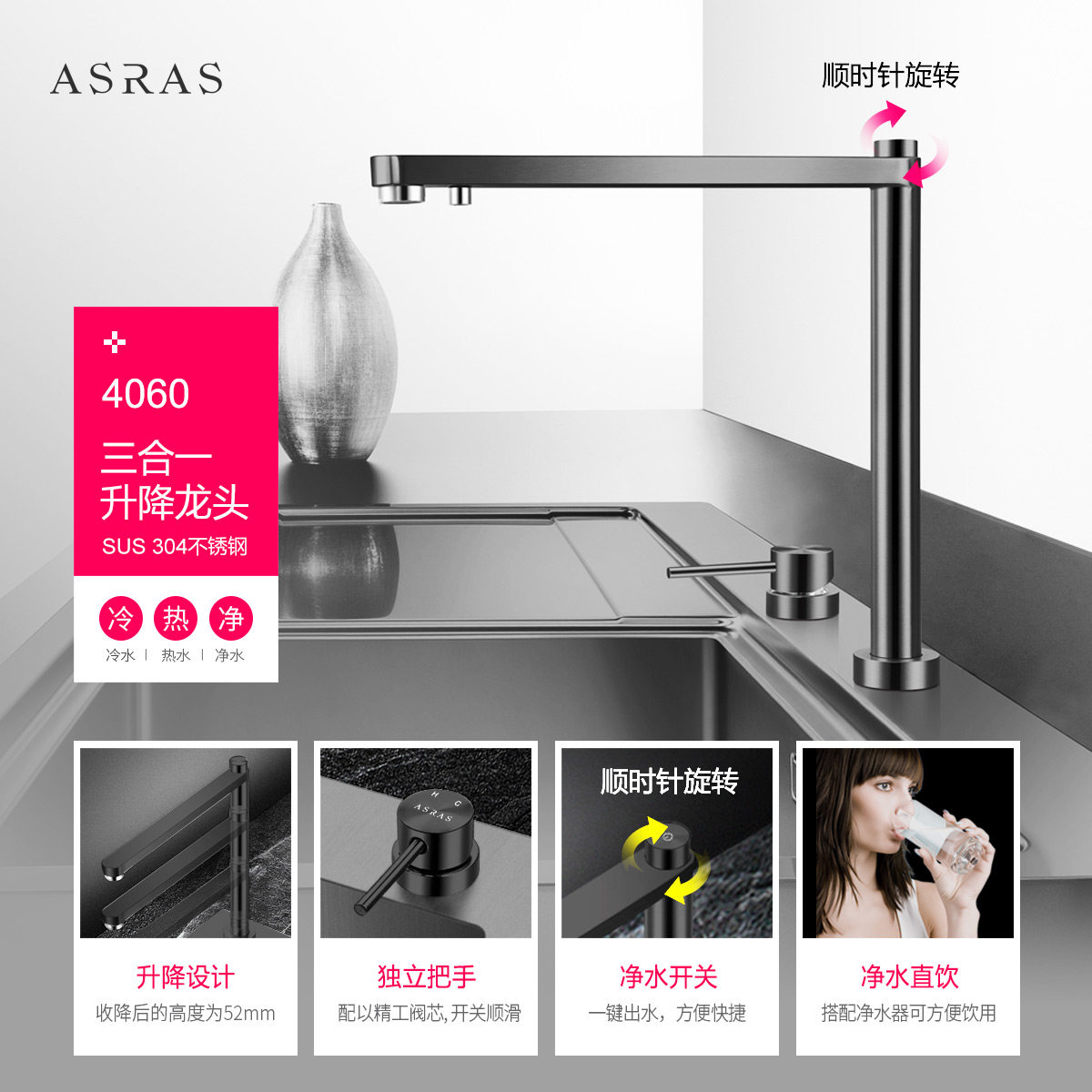 阿萨斯隐形水槽大单槽智能黑色纳米不锈钢洗菜盆带盖垃圾桶洗杯器