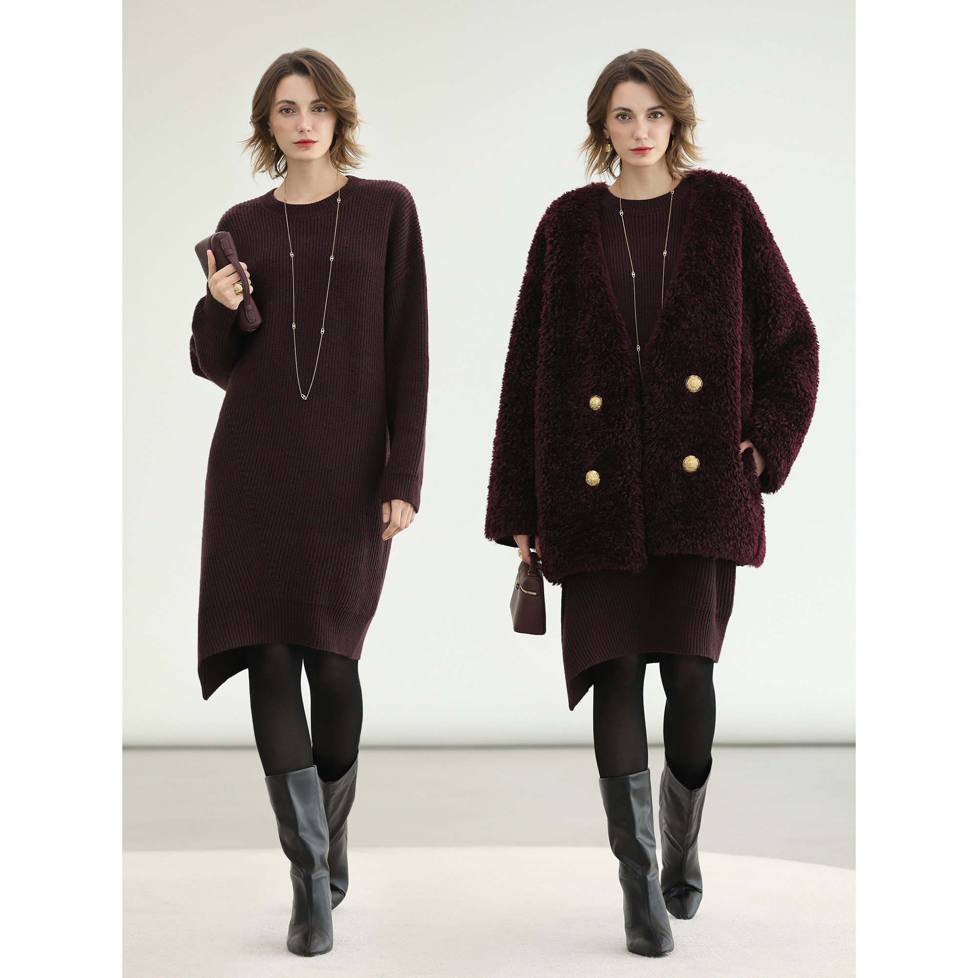 COCOBELLA设计感软糯粗针螺纹毛衣裙女秋冬针织连衣裙MZ3131
