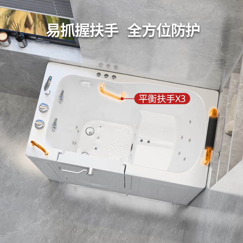 步入式老人无障碍浴缸家用成人按摩恒温亚克力侧开门专业助浴器
