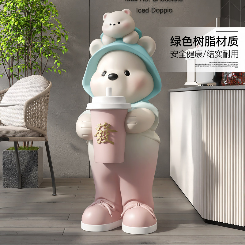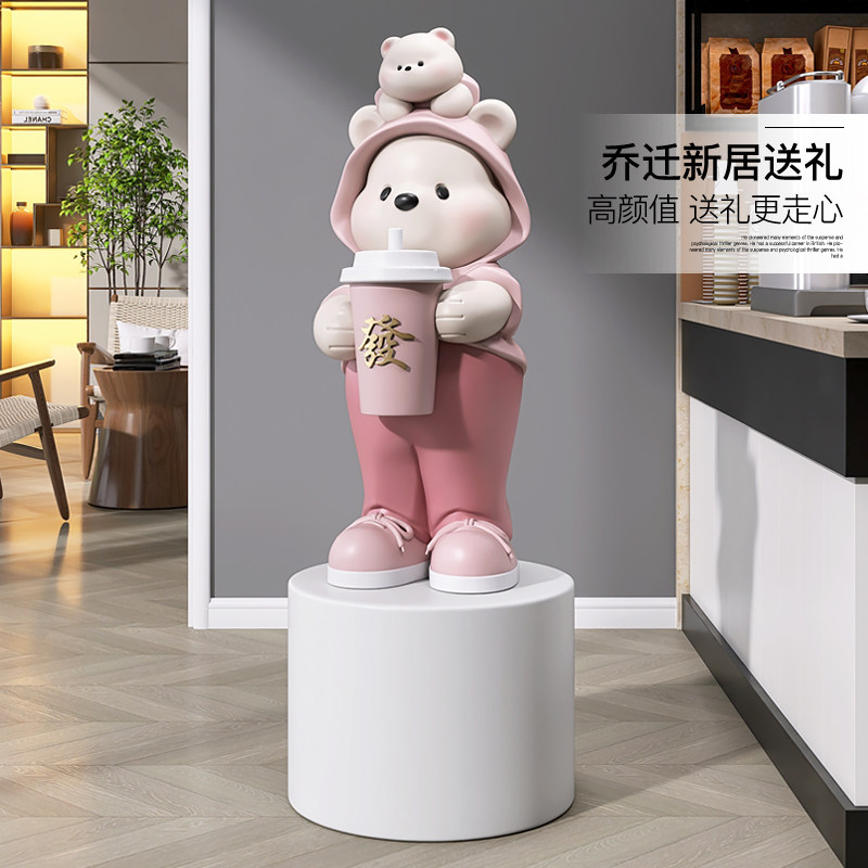 可爱熊奶茶店装饰摆件大型落地公仔雕塑客厅电视柜沙发旁乔迁礼品