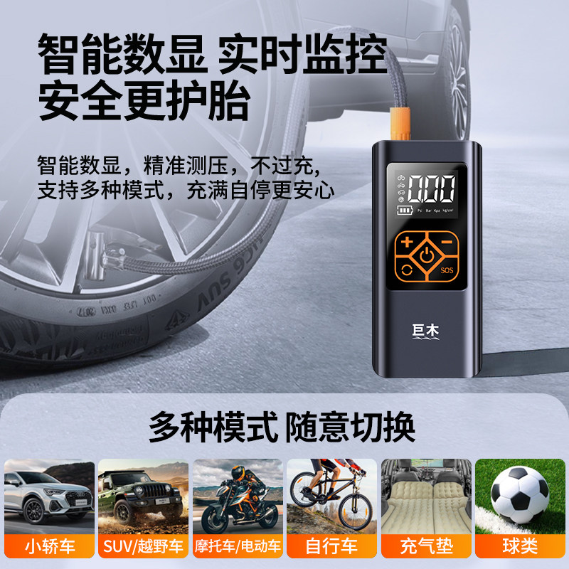 推荐理由:车载充气泵便携式汽车用电动打气筒氮气轮胎带测胎压专用无线冲气