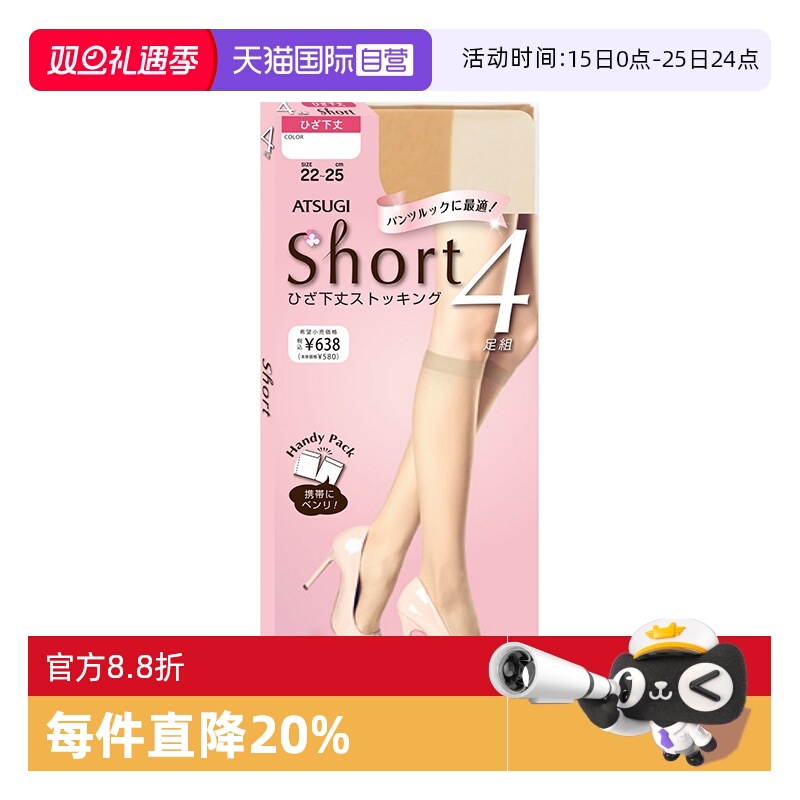 【自营】ATSUGI/厚木四双装小腿袜纯色中筒袜黑色丝袜女薄款氨纶