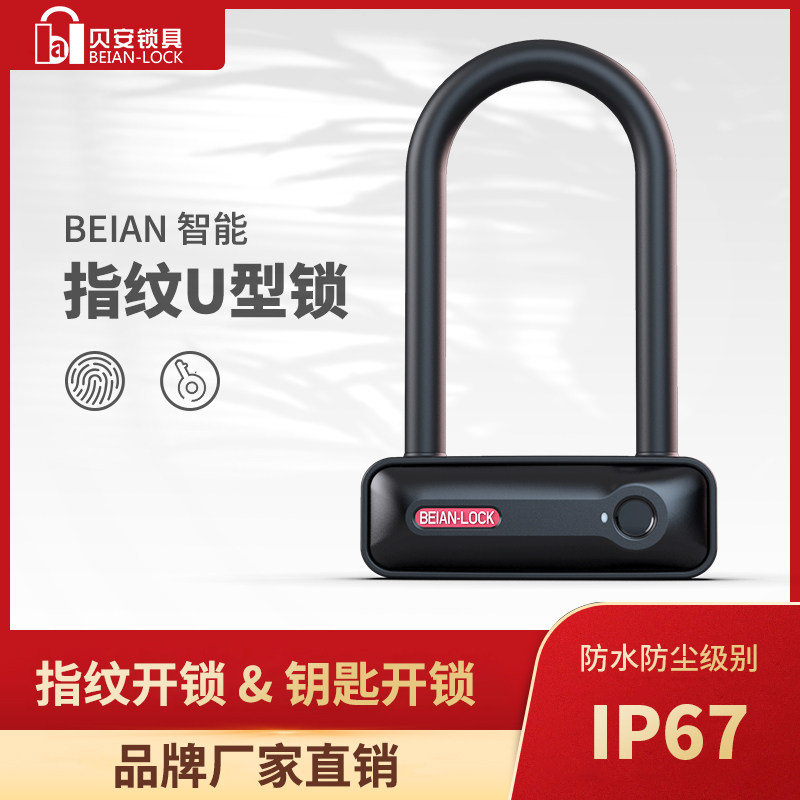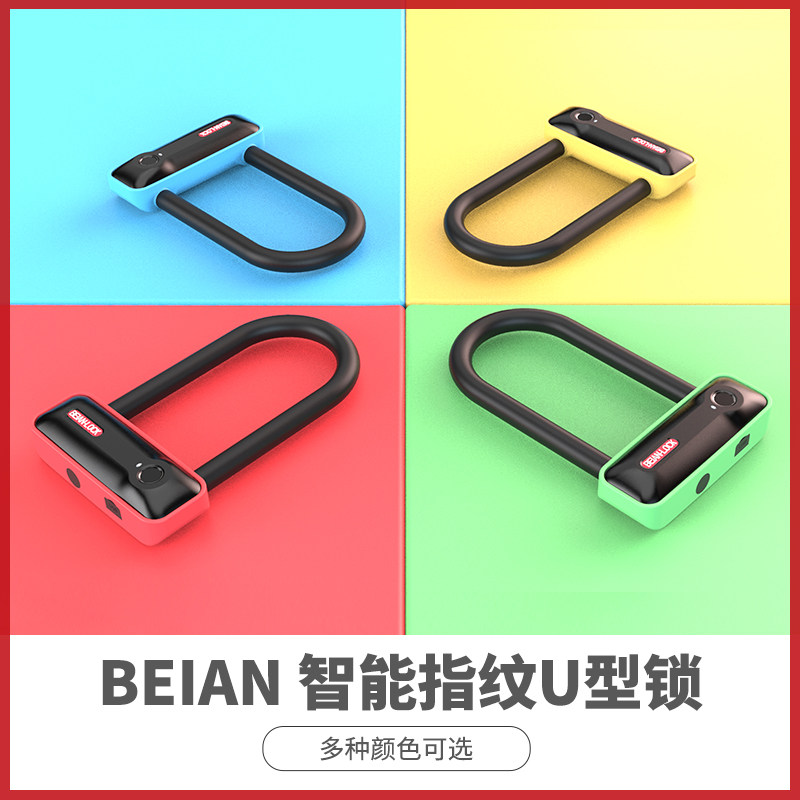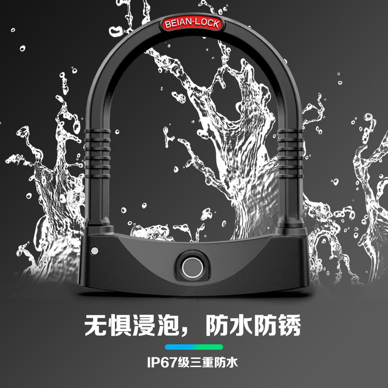 智能指纹锁摩托车锁头 电瓶车自行车电动车锁防盗锁u型防撬免钥匙