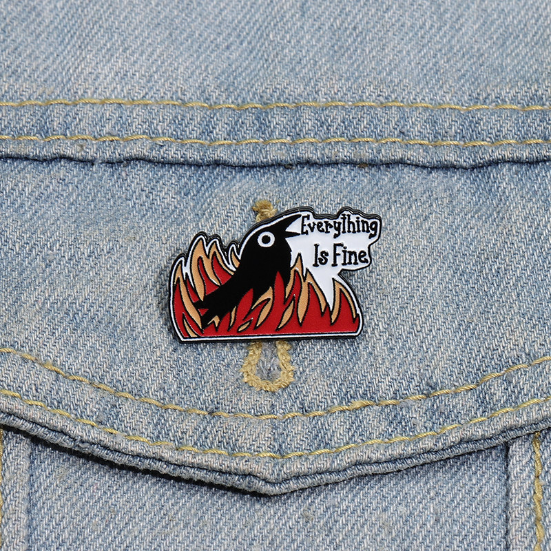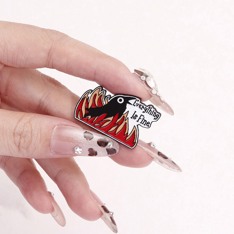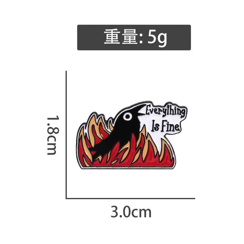 一切都很好英文字母黑乌鸦卡通胸针金属徽章衣服包包配饰勋章