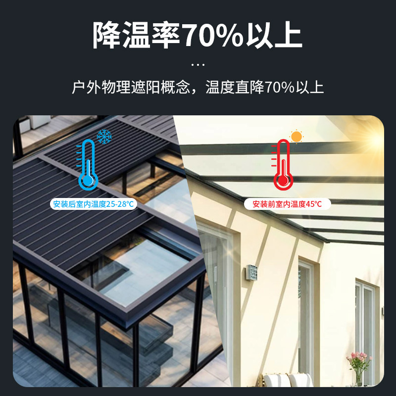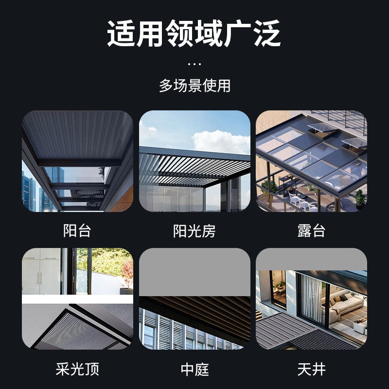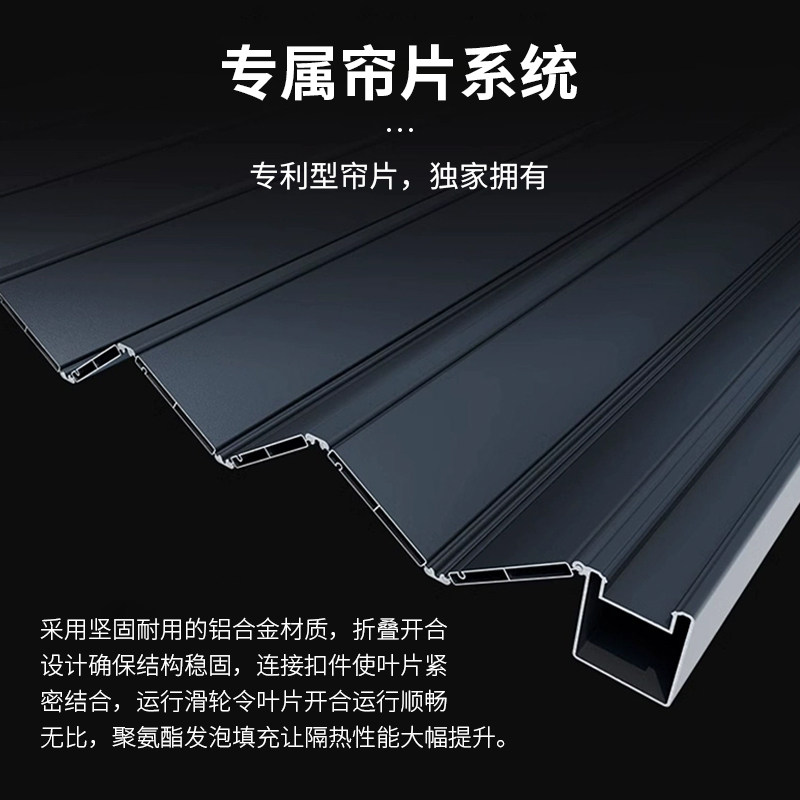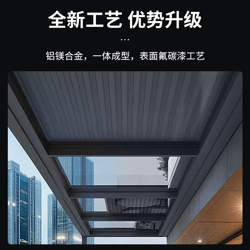 推荐理由:阳光房铝合金遮阳蓬电动伸缩隔热百叶帘板户外玻璃顶防晒天幕帘