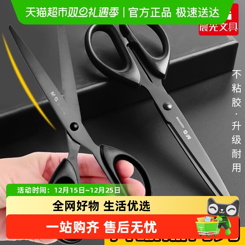 晨光黑刃剪刀家用专用手工剪刀美工刀防锈办公剪刀快递刀不粘胶