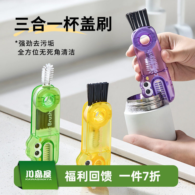 川岛屋三合一杯盖刷奶瓶清洗神器杯口刷缝隙无死角洗杯子专用刷子