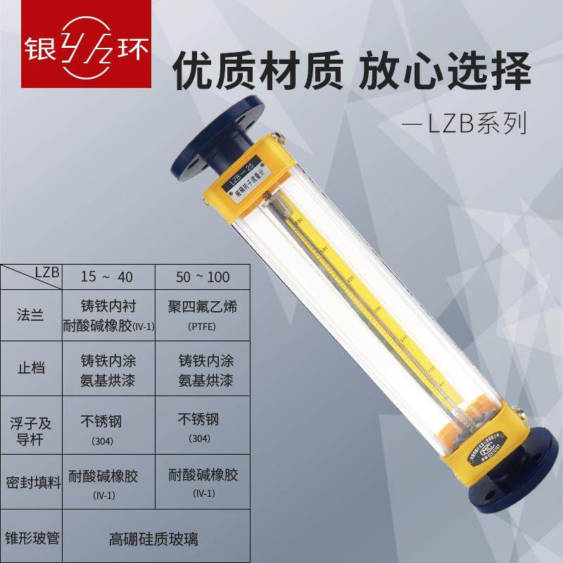 银环玻璃转子流量计LZB15/25/40/50/100气体液体法兰式浮子流量计