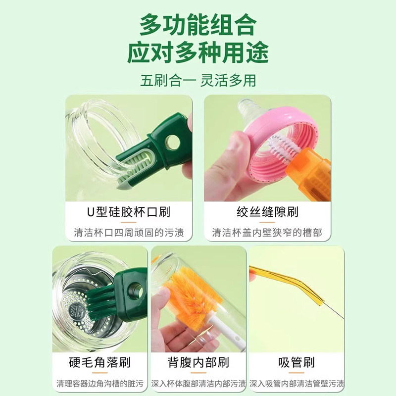 杯刷五合一长柄保温杯盖清洁刷清洗神器洗杯子吸管刷奶瓶刷子茶杯