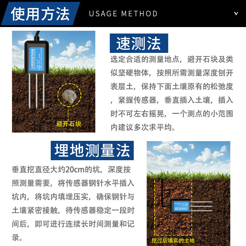 推荐理由:土壤温湿度传感器农业大棚水分湿度电导率肥力监测土壤PH检测仪