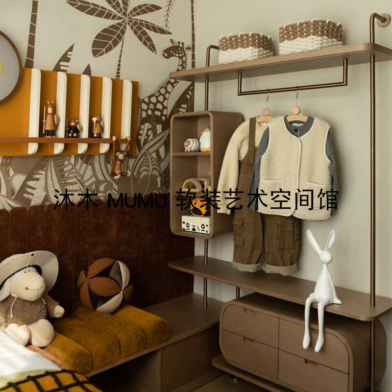 样板间儿童房展厅别墅棕色男孩衣柜床头柜软装饰品组合摆件套装