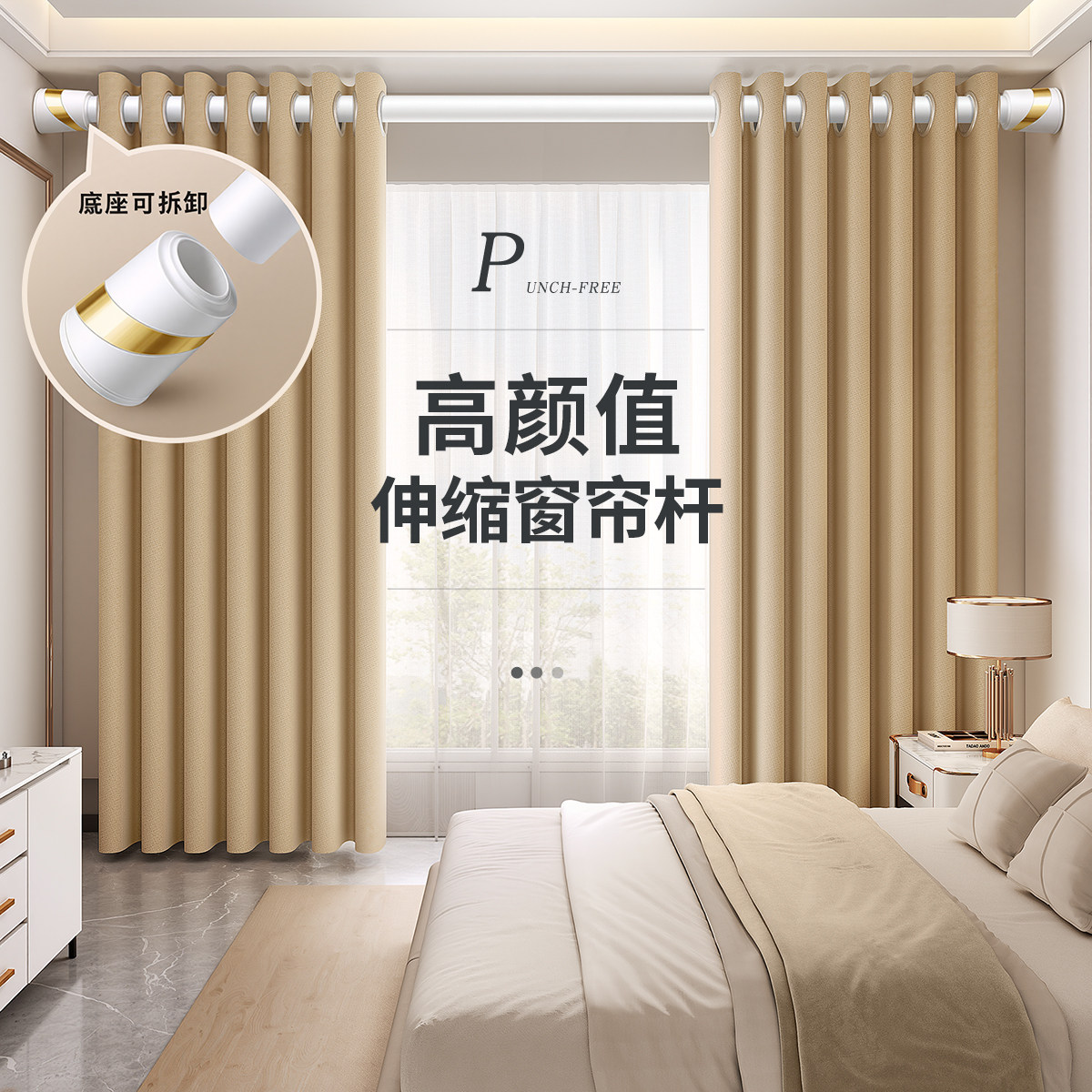窗帘杆免打孔卧室伸缩杆阳台支架升缩撑杆晾衣杆浴帘杆单杆罗马杆