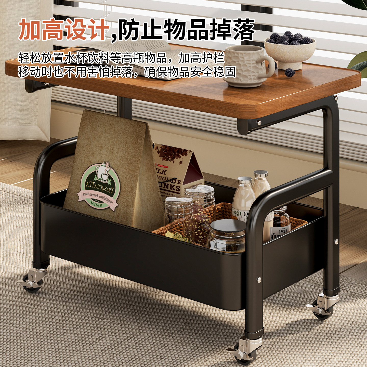 推荐理由:可移动小推车置物收纳沙发边几茶几零食收纳架子架中古床头柜客厅