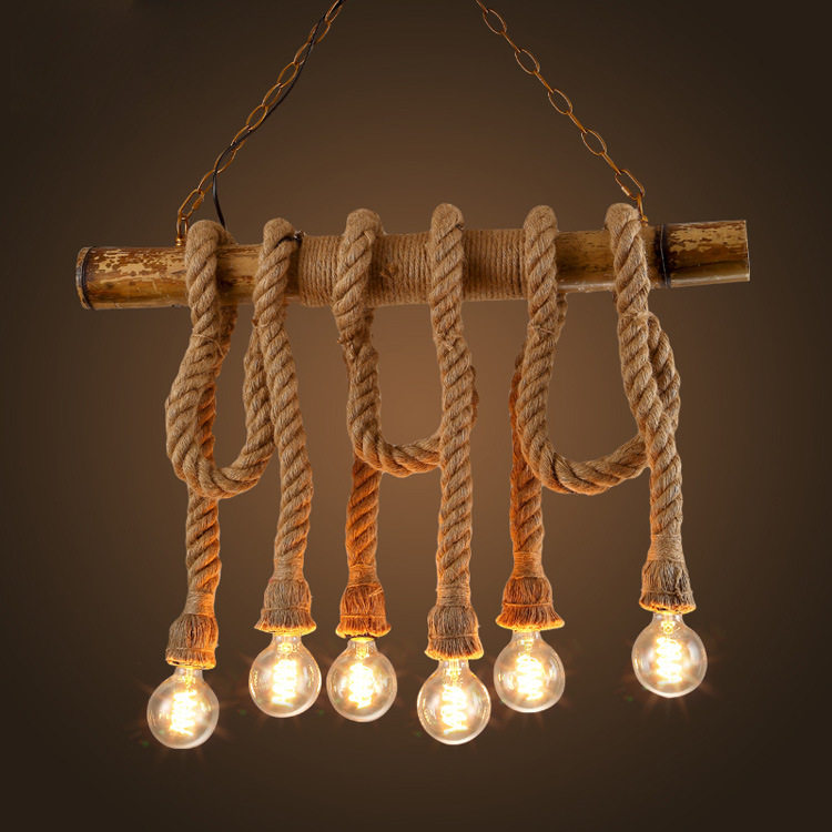 美式乡村田园工业复古铁艺麻绳客厅餐厅书房吧台个性创意竹艺吊灯