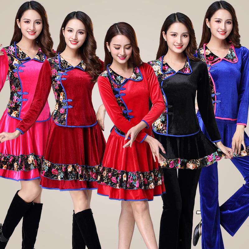 1835 韩国绒 金丝绒套装大码女装舞蹈服团队表演服
