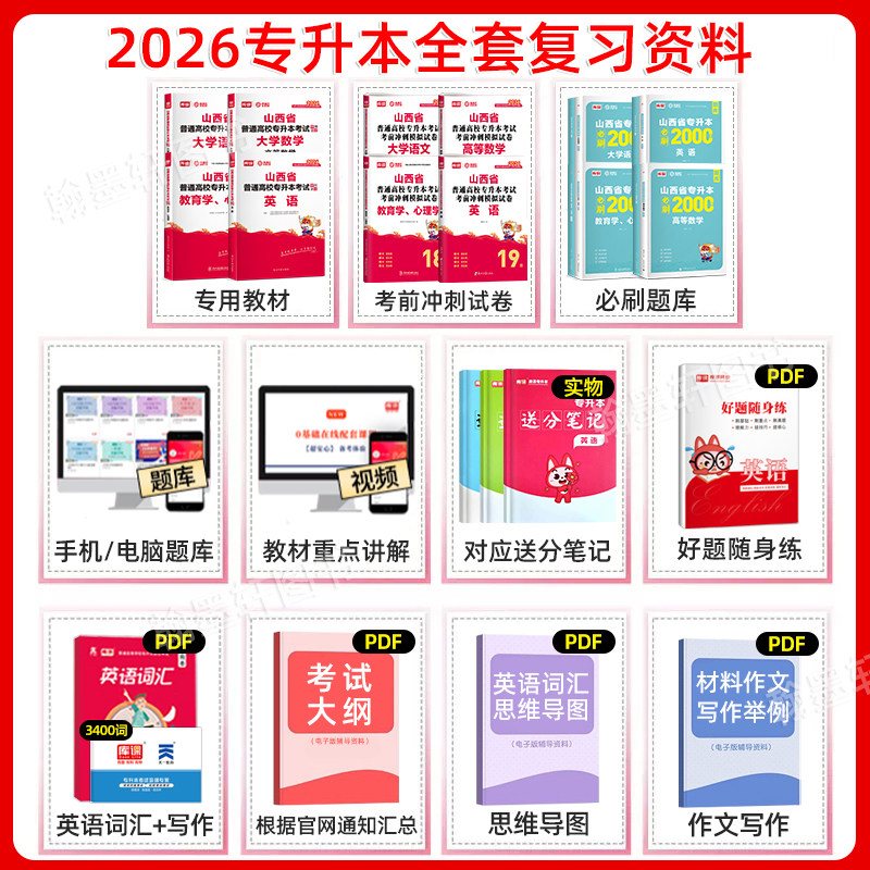 库课2026年山西专升本复习资料2025教材必刷题必刷2000题文科理真题试卷模拟高等数学语文英语公共山西省统招专升本考试历年真题卷