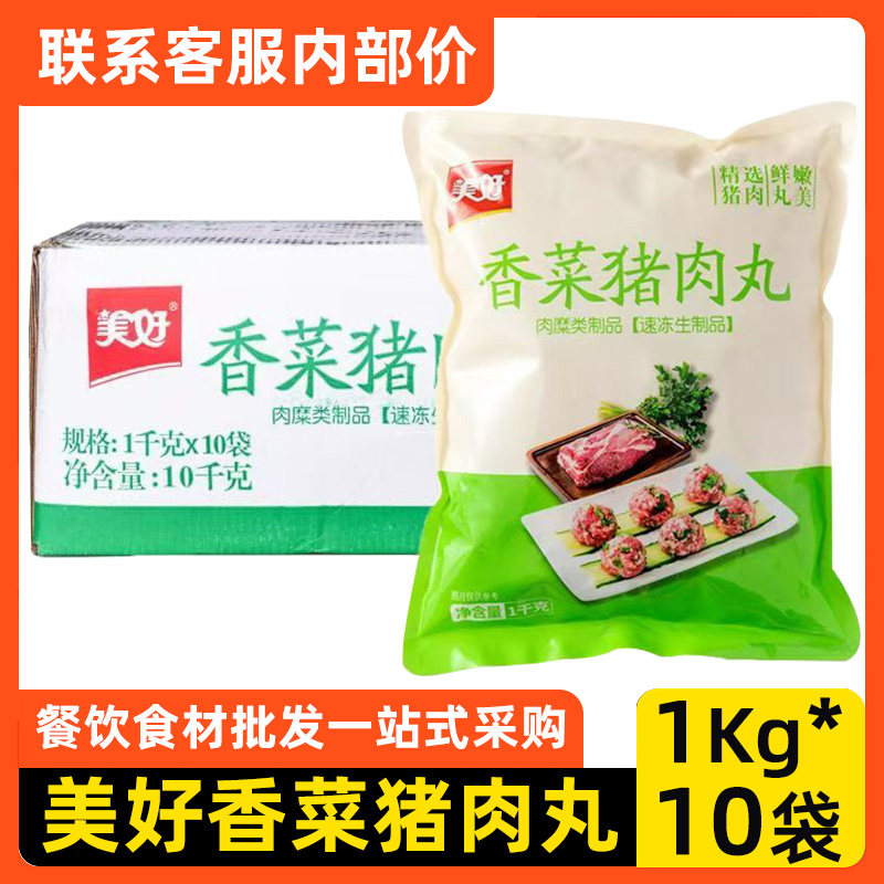 美好香菜猪肉丸子整箱商用1kg*10包速冻半成品火锅串串麻辣烫食材