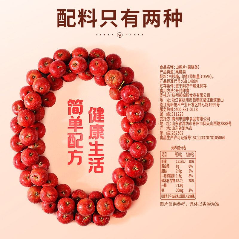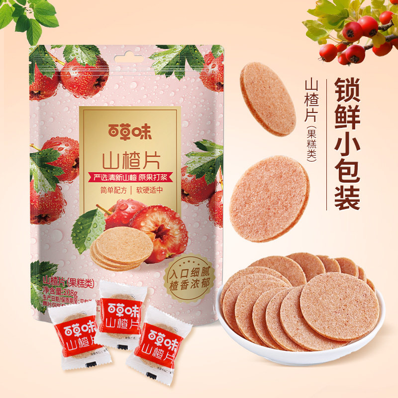 百草味山楂片山楂制品208g儿童年货办公室开胃怀旧休闲零食小吃