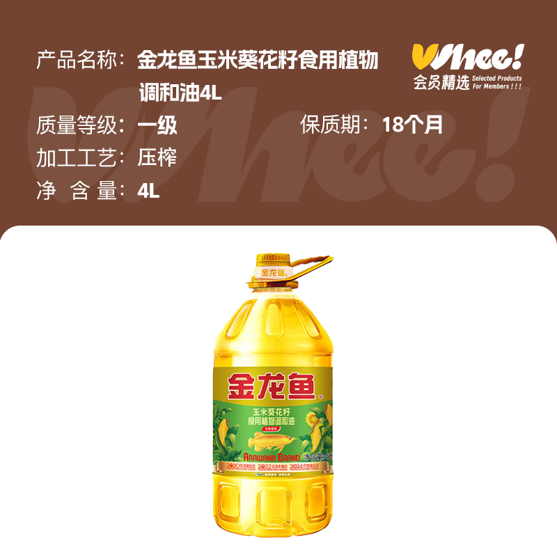 推荐理由:【芭芭农场】金龙鱼玉米葵花籽植物食用调和油4L 非转基因